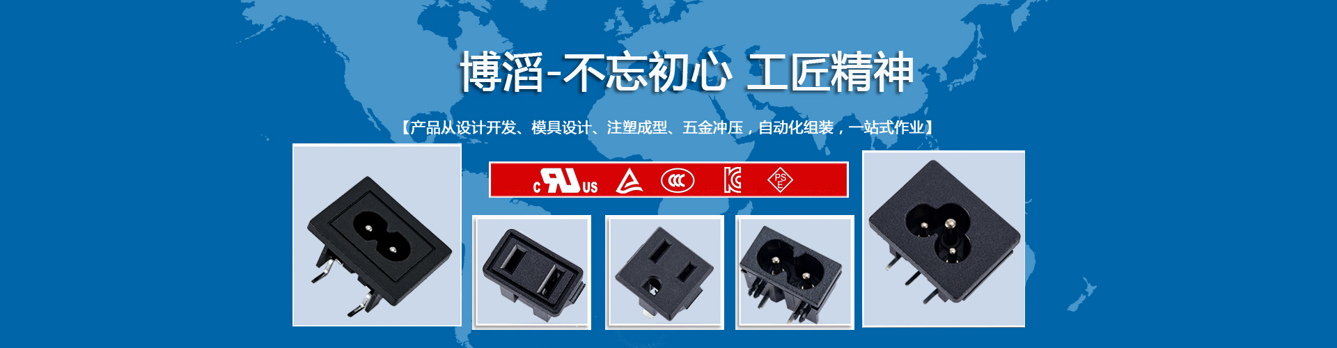 廣東博滔電子有限公司成立于 2018年,公司主要研發(fā)和生產(chǎn)各種器具輸入插座、器具耦合器等各種電源插座,產(chǎn)品廣泛應(yīng)用于電腦及周邊、家用電器、工業(yè)設(shè)備、儀器儀表、通訊設(shè)備、智能家居等領(lǐng)域。 我司產(chǎn)品均通過美國(guó)UL和CUL 、德國(guó)TUV 、 韓國(guó)KC 、日本PSE、中國(guó)CCC 等認(rèn)證。所有產(chǎn)品均能通過RoHs和Reach環(huán)保檢測(cè)。客戶主要分布在中國(guó)大陸、臺(tái)灣、日本、韓國(guó)、東南亞、北美及歐洲地區(qū),多年來公司產(chǎn)品得到世界各地客戶的肯定和信賴……